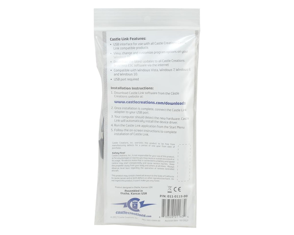 Castle Link USB プログラミング キットを使用して、Windows® PC で Castle ブラシレス ESC とアクセサリをプログラムします。