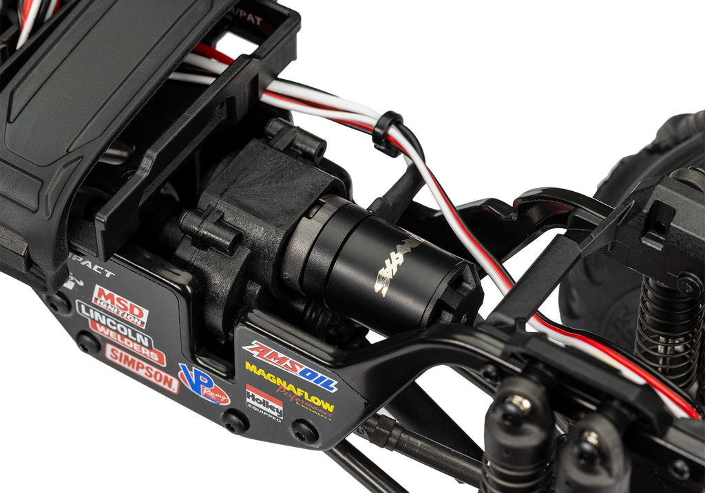 ハイ/ロー 2 速トランスミッションで、ブラシレス トルクとスピードの向上を活用できます。手動で選択可能なユニットは、標準の高ギア比を維持しながら、高速ブラシレス走行とウイリー ポップの楽しさを実現しながら、驚異的な岩登りトルクを実現する低ギア オプションを追加します。