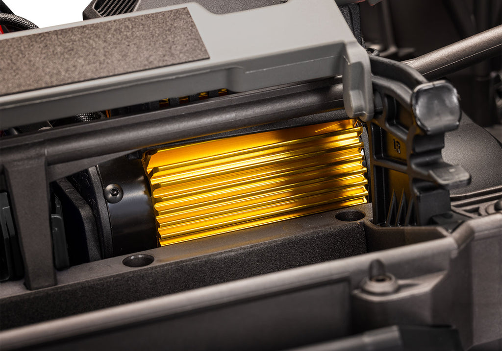 BIGFOOT 50thには、ゴールドアルマイト仕上げのショックアブソーバー、アクスル、モーターヒートシンクが付属します。バンパーとホイールにもゴールドアルマイト仕上げが施され、個性的なルックスを演出します。Velineon VXL-8s ESCもモーターと同色のブラックプラスチック製です。これらの限定版パーツはBIGFOOT 50th限定で、単体では販売されません。
