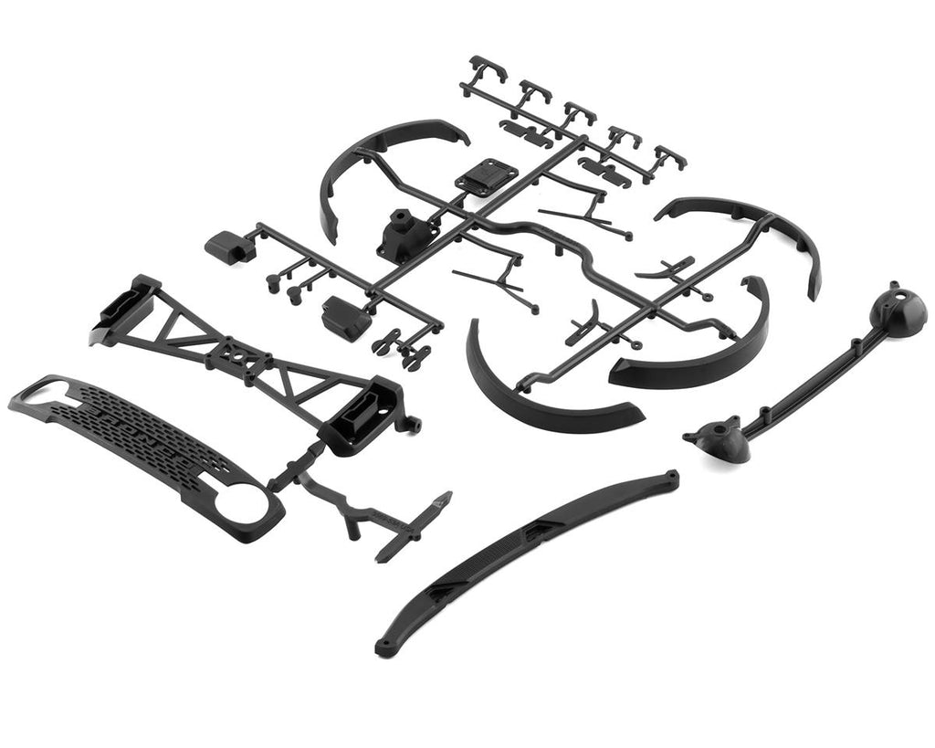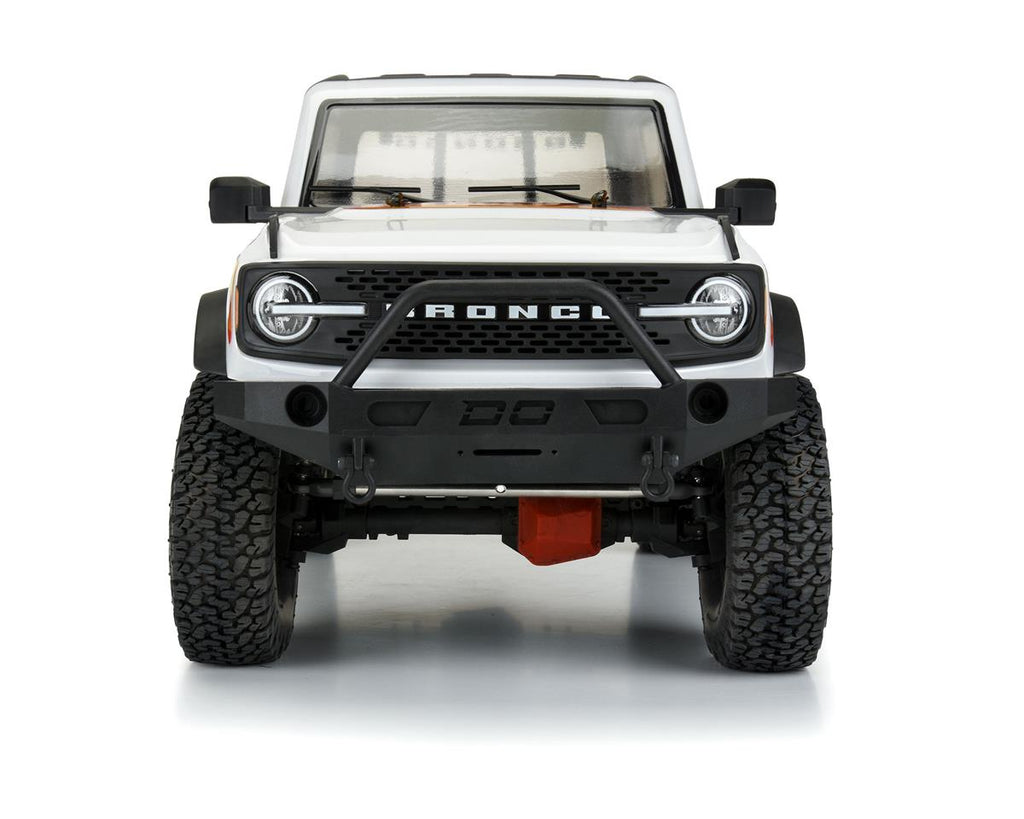 Proline 2021 Ford Bronco Rock Crawler Bodyは、非常に詳細なスケールの特徴が組み込まれており、Prolineがこれまでに製造した中で最もスケールの大きいボディです。非常に詳細なフロントグリル、サイドビューミラー、テールライトバケット、ドアハンドルを備えたこのボディは、2021 Ford Broncoに命を吹き込みます。ボディ後部にスペアタイヤホルダーが統合されています。これにより、ユーザーはスペアクローラータイヤを後部に取り付けることができます。リアリティを高めるために、LED照明(別売)を取り付けることができるように設計されたヘッドライトとテールライトバケットがあります。