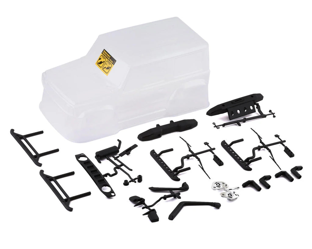 MST J4クローラー用クリアボディ(オプション)は、242mmホイールベースのMST CMXまたはCFXトラックをカスタマイズするのに最適です。この未塗装のボディは、お好みのカラーリングでお楽しみいただけます。クリアボディ、インナーフェンダー、スケールディテール、ウィンドウマスク、デカールが付属します。