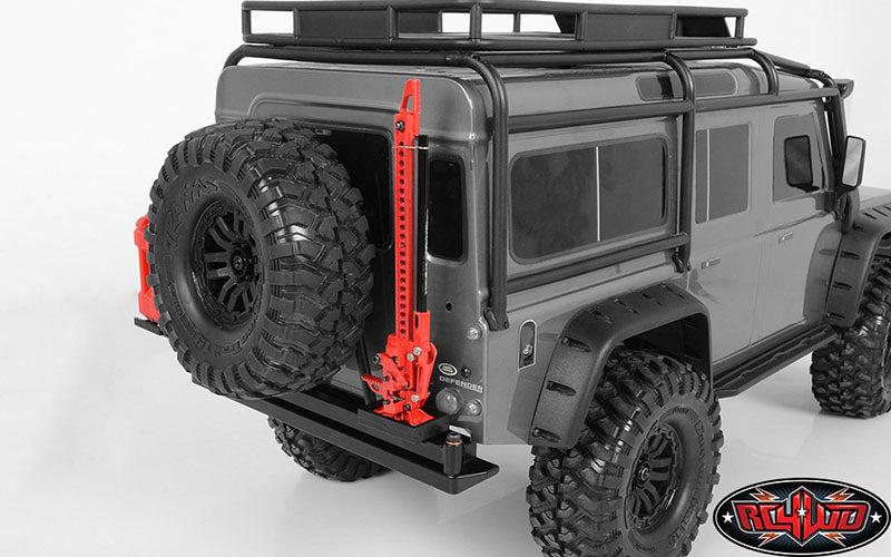 例として、Traxxas TRX-4 Land Rover Defender にRC4WD 1/10 ハイリフト ジャック(Z-S1526) を取り付けた状態を示します (付属しません)
