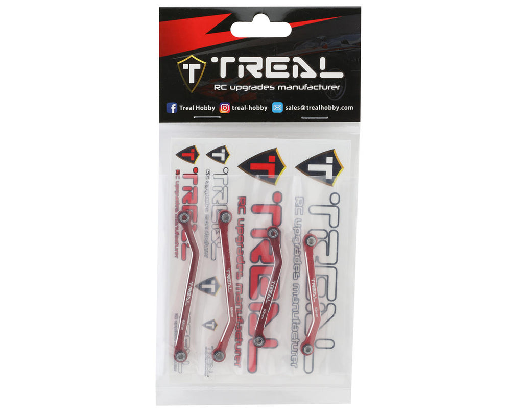 Treal Hobby Traxxas TRX-4M CNCアルミ製ハイクリアランスロアリンクセット。このリンクセットは、地上高を高めることでクローリング性能を向上させ、比類のない耐久性を実現。過酷な条件下でも長期間のパフォーマンスを保証します。オフロードの過酷さにも耐えうる高品質の7075アルミニウム製で、RC愛好家に安心を提供します。さらに、様々なアルマイトカラーをご用意しており、TRX-4Mの外観をカスタマイズできます。