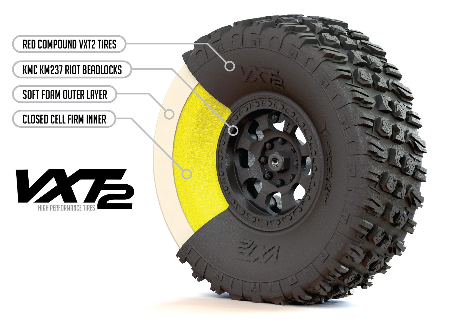 VXT2 レッドコンパウンドタイヤ - 岩場での実績ある競争相手