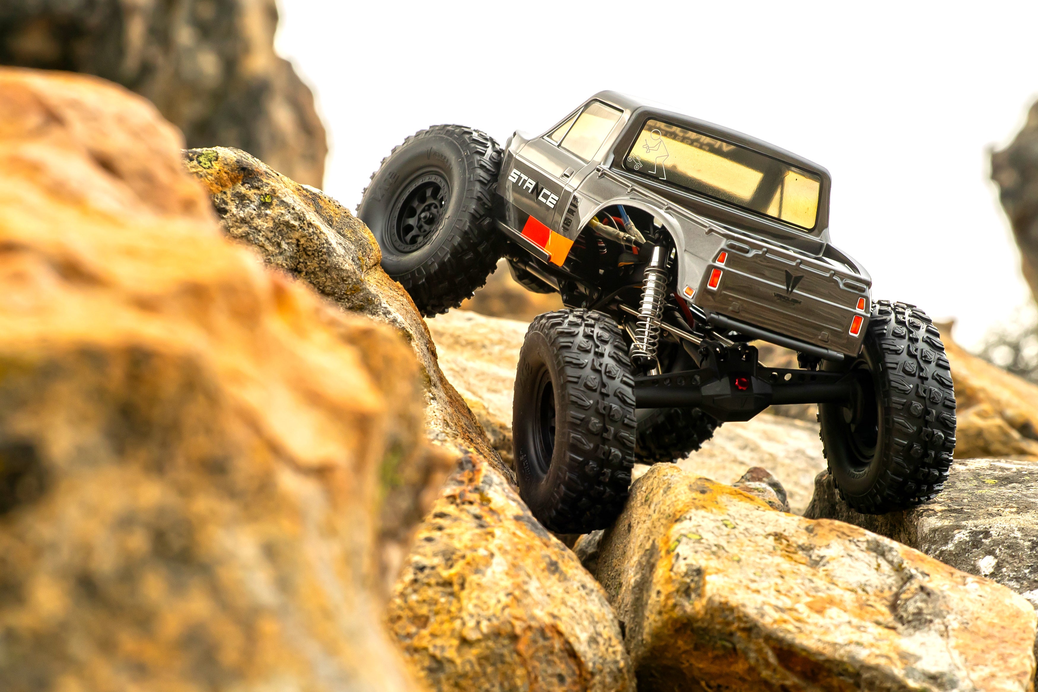 VRD Stance RTRは、究極のRTRトレイルドライビング体験をすぐに実現するために設計しました。 VRDは、8mm径アルミネジボディ、デュアルXリングシール、ロッキングプリロードカラー、キー付きスプリングカップ、ポリッシュ仕上げのスチールショックシャフトを備えた切開90mm S8Eショックを採用しています。サーボオンアクスルを装備したフロント4リンクサスペンションは、ステアリングの効率性を重視しています。ステンレススチール製のリンクが軽量化と耐久性を確保しています。