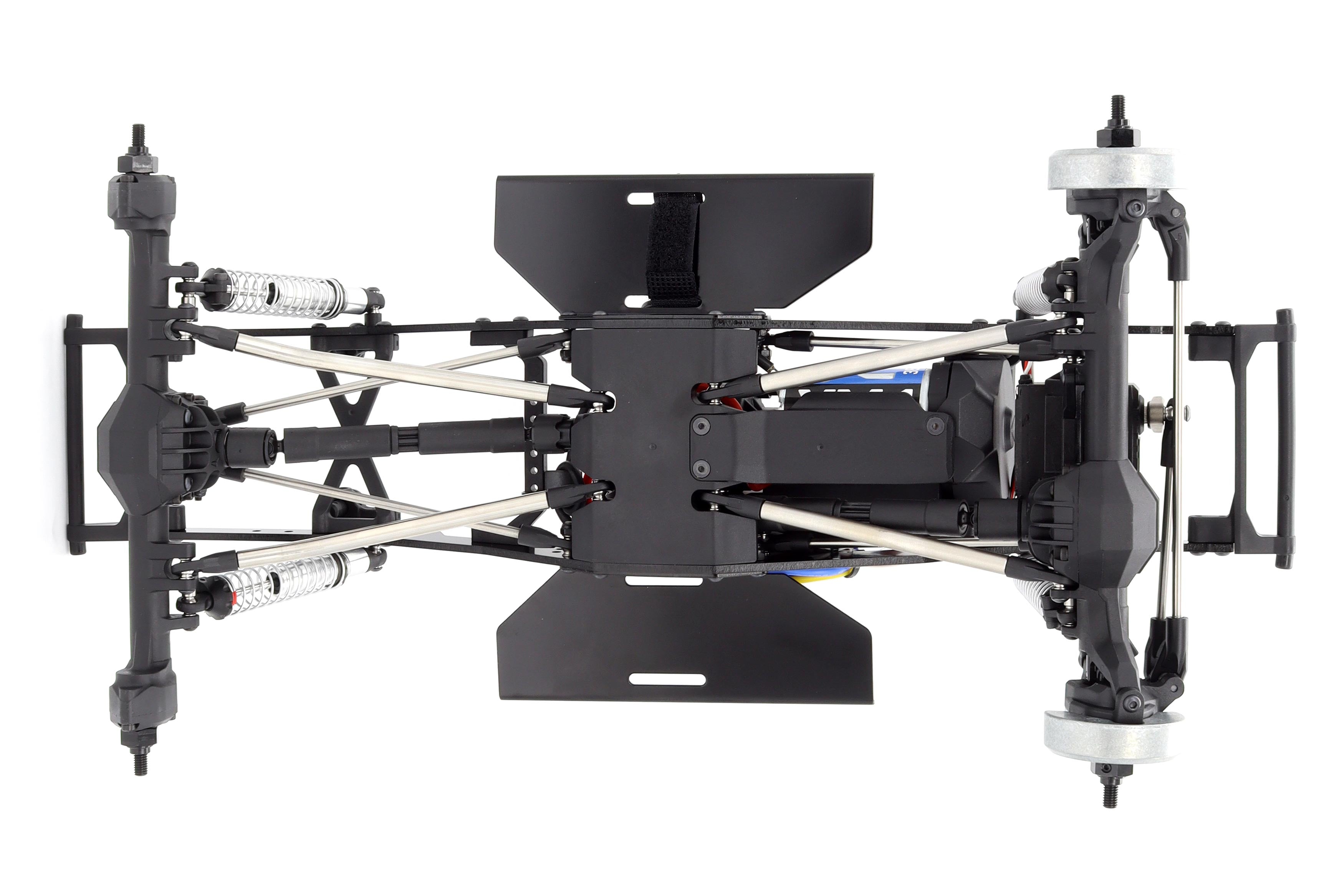 アルミフラットレールシャーシと角度付きスキッドプレートを採用した機能重視の設計で、パフォーマンス重視のレイアウトを実現。成型シャーシパーツを装備し、カスタマイズ可能なベースで緩やかな地形にも対応。ショックアブソーバーとボディの取付位置を複数用意し、シンプルなフロント/リアバンパーにより、ボディの取り付けとアライメントが簡単です。電子機器とバッテリーをしっかり搭載し、モーターをフォワードバイアス配置することで、最高のパフォーマンスを引き出すための最適な造りを実現します。